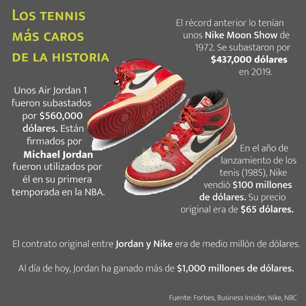 Un par de tenis con el autógrafo de la leyenda de los Bulls fueron subastados por 560,000 dólares por la casa de subastas Sotheby´s. Estos tenis fueron utilizados por Jordan en su primera temporada en la NBA. El par de tenis son la edición “Chicago” y lleva ese nombre por los colores negro, rojo y blanco, mismos que usan los Bulls en su uniforme.